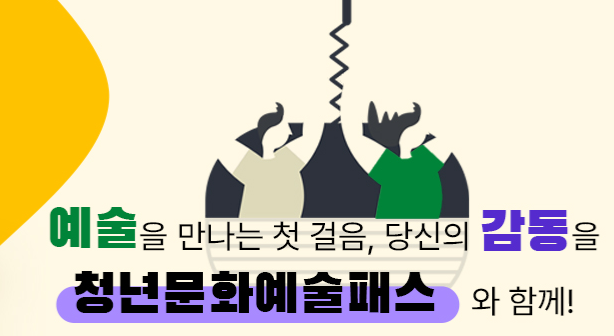 청년문화예술패스는 사회에 첫 발을 내딛는 대한민국 19세 청년에게 공연(연극·뮤지컬·클래식·콘서트· 음악 페스티벌 등 ) · 전시 관람비를 지원하여 청년의 문화향유 기회를 제공하고 품격있는 문화시민이자 적극적 문화소비 주체로 성장할 수 있도록 지원하는 사업이랍니다~